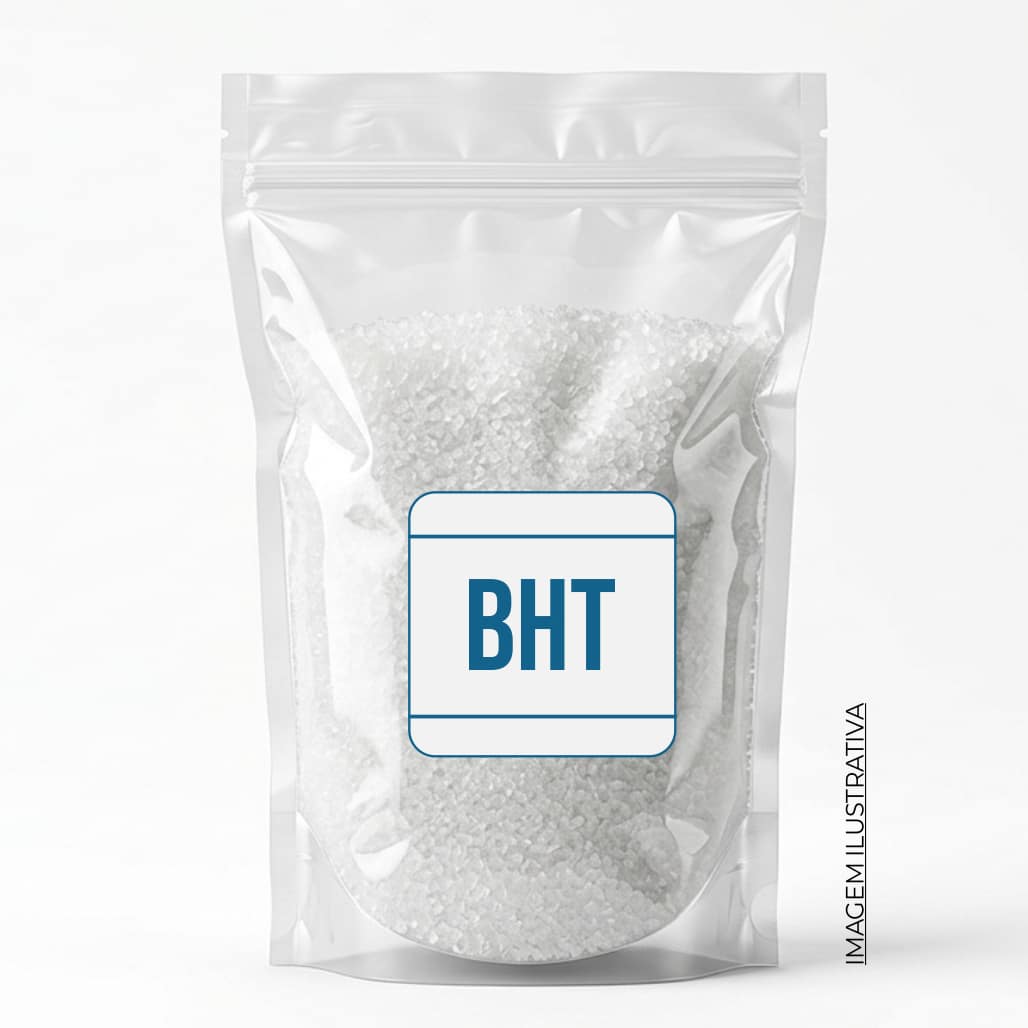 Em seguida, o BHT apresenta-se como um pó cristalino branco, de odor leve, praticamente insolúvel em água e propilenoglicol. No entanto, dissolve-se em álcoois e solventes orgânicos, o que facilita sua incorporação na fase oleosa. Consequentemente, a dispersão torna-se homogênea em emulsões O/W. Além disso, seu peso molecular (220,35 g/mol) e fórmula (C₁₅H₂₄O) indicam compatibilidade com diversos excipientes.