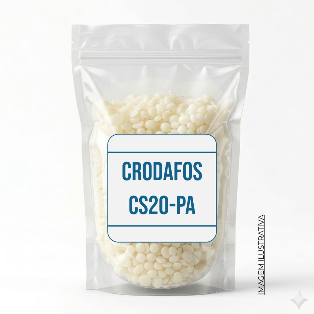 Além disso, o armazenamento deve ser realizado em local seco, fresco e ao abrigo da luz direta para preservar a integridade das pastilhas cerosas. Dessa maneira, você preserva todas as propriedades técnicas do CRODAFOS CS20-PA Insumo, garantindo a padronização e a eficiência de cada lote produzido em sua indústria.