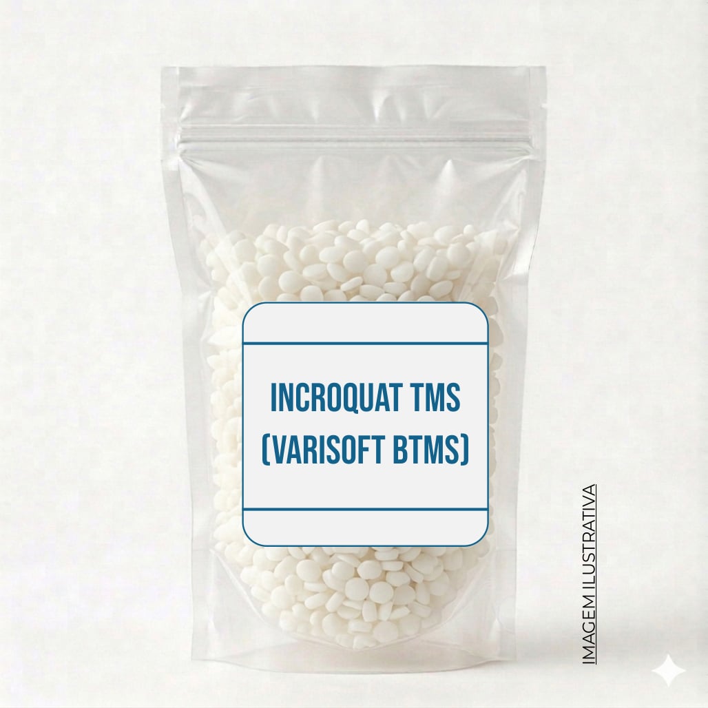 O INCROQUAT TMS (também conhecido como VARISOFT BTMS; INCI Name: Cetearyl Alcohol, Behentrimonium Methosulfate) é uma matéria-prima multifuncional amplamente valorizada na indústria de beleza e cuidados pessoais. Ele atua como um agente condicionante excepcional e um emulsionante catiônico de alta performance. Primeiramente, destaca-se por proporcionar um desembaraço superior e uma maciez inigualável aos cabelos, deixando-os sedosos e maleáveis. Além disso, o Incroquat TMS é capaz de criar emulsões estáveis e com texturas luxuosas em cremes e loções. Portanto, se você busca formular produtos que ofereçam condicionamento intenso, toque aveludado e estabilidade perfeita, o Incroquat TMS é um ingrediente indispensável. Inclusive, ele é ideal para criar formulações cremosas e consistentes.